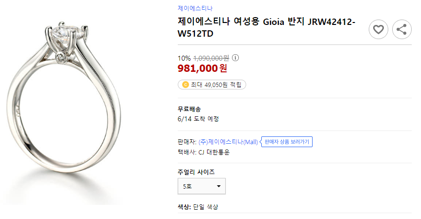 제이에스티나 여성용 Gioia 반지 JRW42412-W512TD