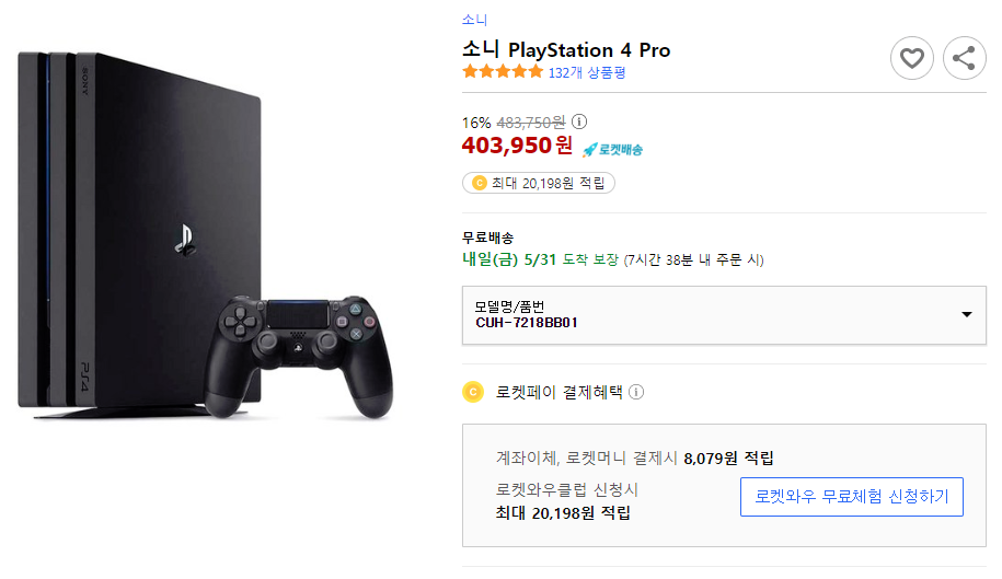제품명: PlayStation 4 Pro (글레이셜 화이트)