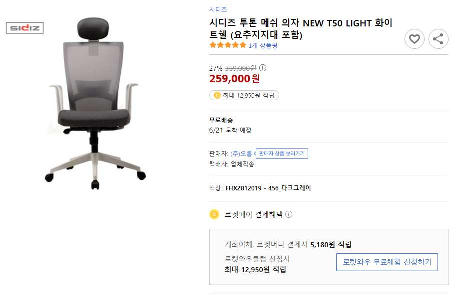 시디즈 투톤 메쉬 의자 NEW T50 LIGHT 화이트쉘 (요추지지대 포함)