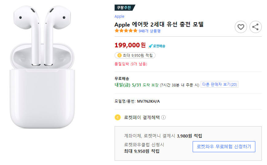 Apple 에어팟 2세대 유선 충전 모델